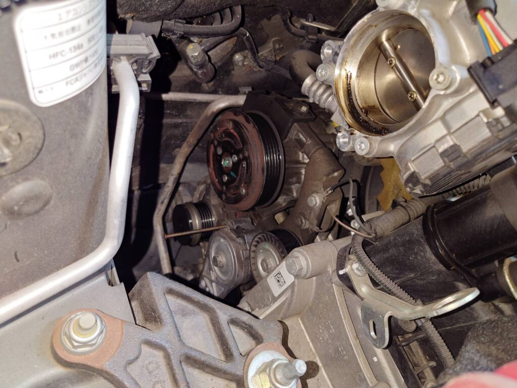 オーナー様から「冷風が出にくい」「走行中に異音がする」との相談を受け、エアコンの冷却効率やコンプレッサーの動作状態を点検しました。
