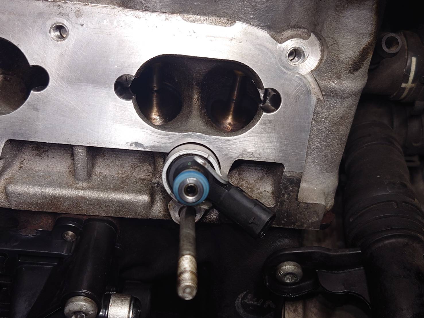 直噴エンジン特有の悩みですが、バルブ周りにカチカチに固まったカーボン(燃えカス)がびっしり。これだけ溜まると、吸気抵抗となってアイドリングの不調や加速のモタつき、燃費悪化の大きな原因になります。