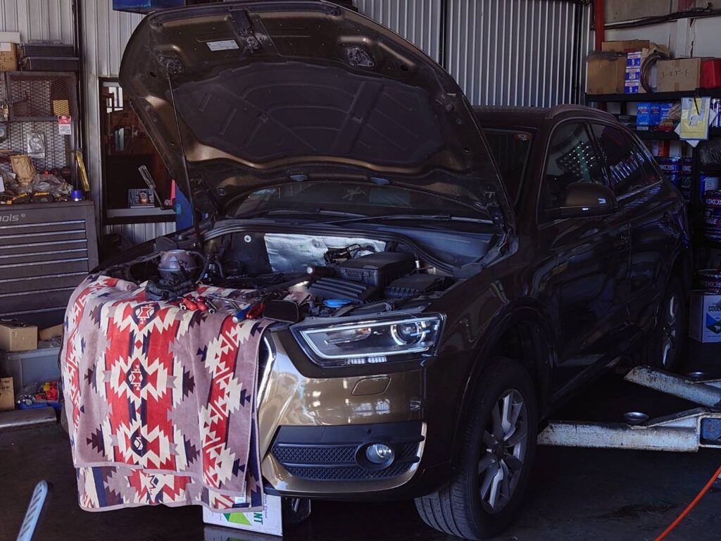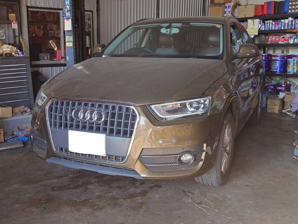 今回ご紹介するのは、アウディ Q3(Audi Q3)の修理事例です。比企郡川島町周辺にお住まいのお客様より「駐車場にピンク色の液が垂れている」とのご相談をいただき、お預かりしました。